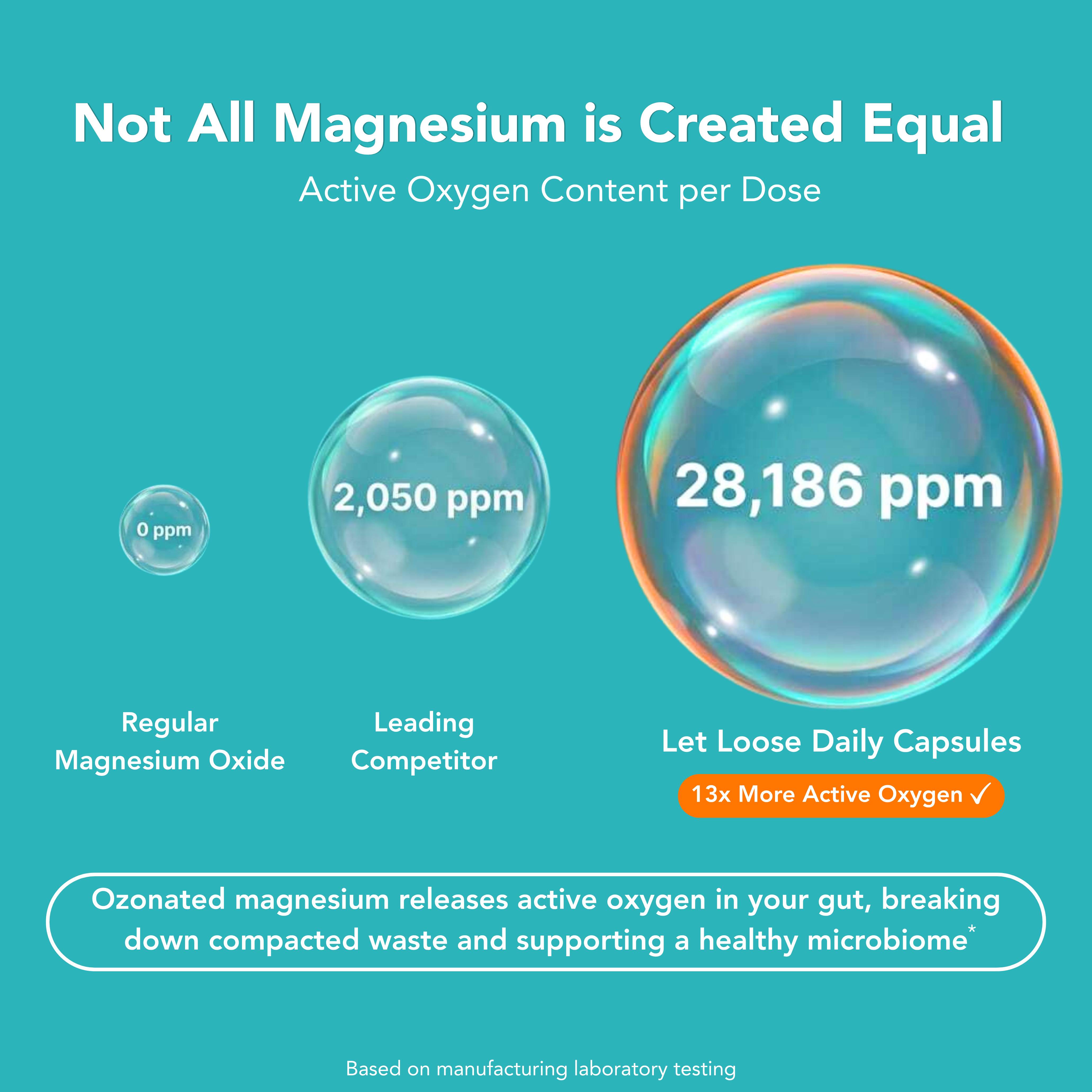 They’re powered by oxygen infusion technology designed to go beyond traditional laxatives and basic magnesium blends. Our formula helps relieve occasional constipation and bloating while supporting your gut’s natural rhythm, so you can feel consistent, comfortable, and in control.