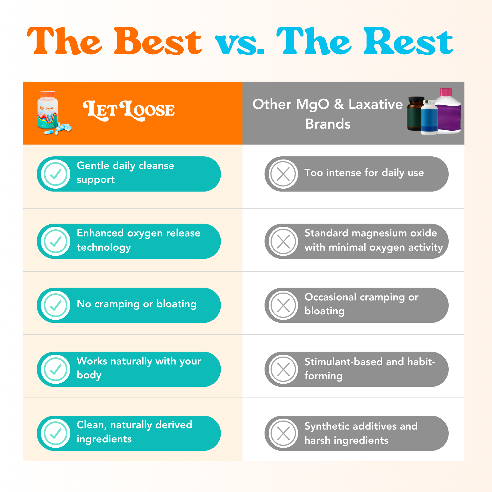 Let Loose LET'S START SH*T Daily Capsules aren’t your average magnesium supplement — they’re powered by oxygen-infusion technology that goes beyond traditional laxatives or magnesium blends. Our formula helps relieve occasional constipation and bloating while supporting your gut’s natural rhythm for daily comfort.